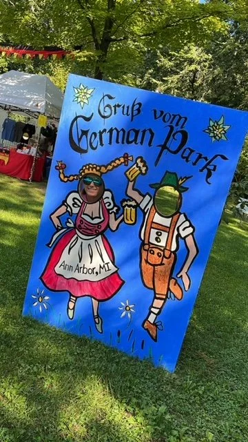 Mike's Deli, Chelsea Michigan. Mural 360 degrees. Depicts outside of the building